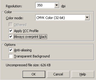 Para usuários do Corel Draw! X3, utilize a opção de Overprint Black (sobreposição do preto) na conversão para bitmap. E para todos usuários desliguem a opção de fundo transparente (Transparent Background).